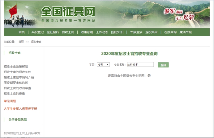 4、经在全国征兵网查询,2020年,AWC万象城可以报名部队直招士官的本专科科专业如下: