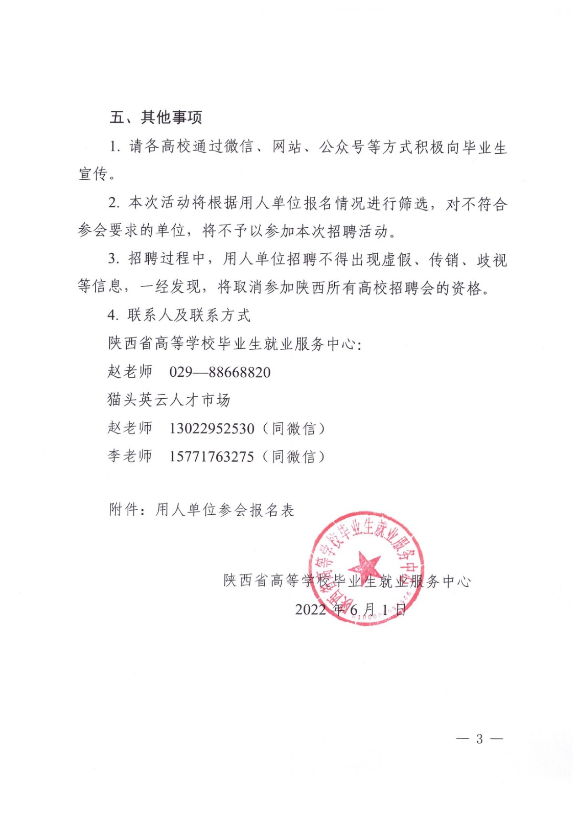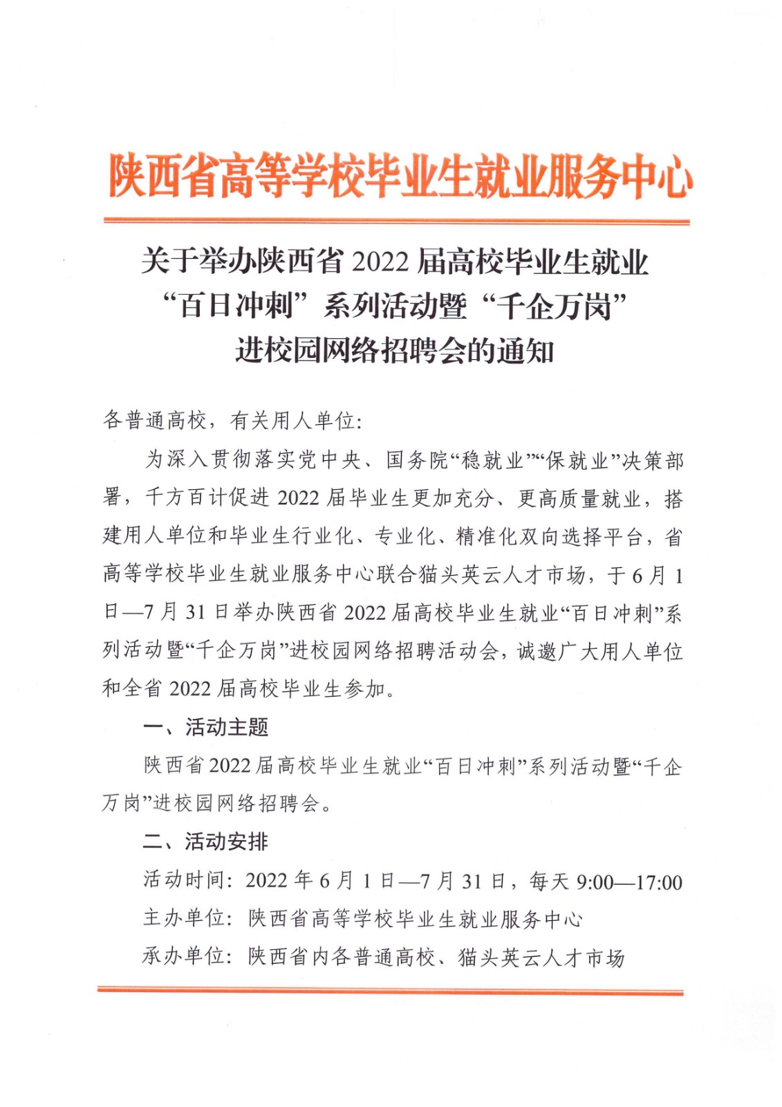 关于举办陕西省2022届高校毕业生就业“百日冲刺”系列活动暨“千企万岗”进校园网络招聘会的通知
