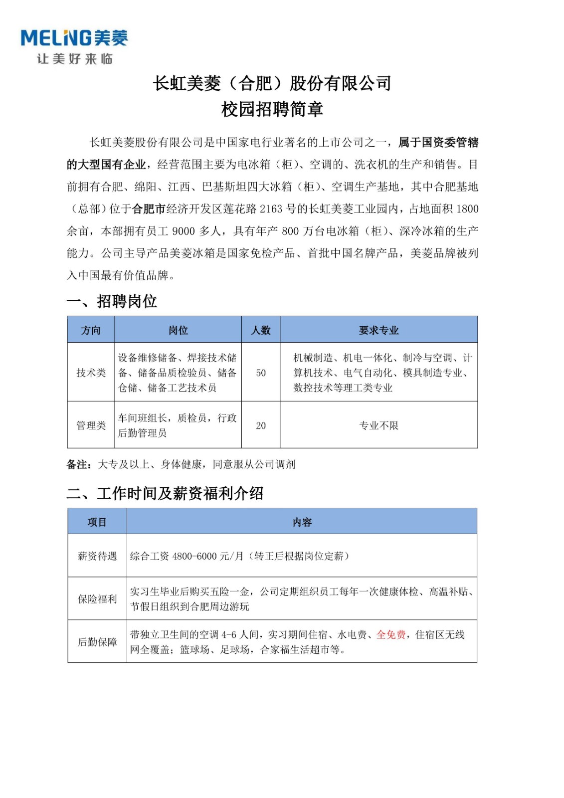 2022届长虹美菱校园招聘简章