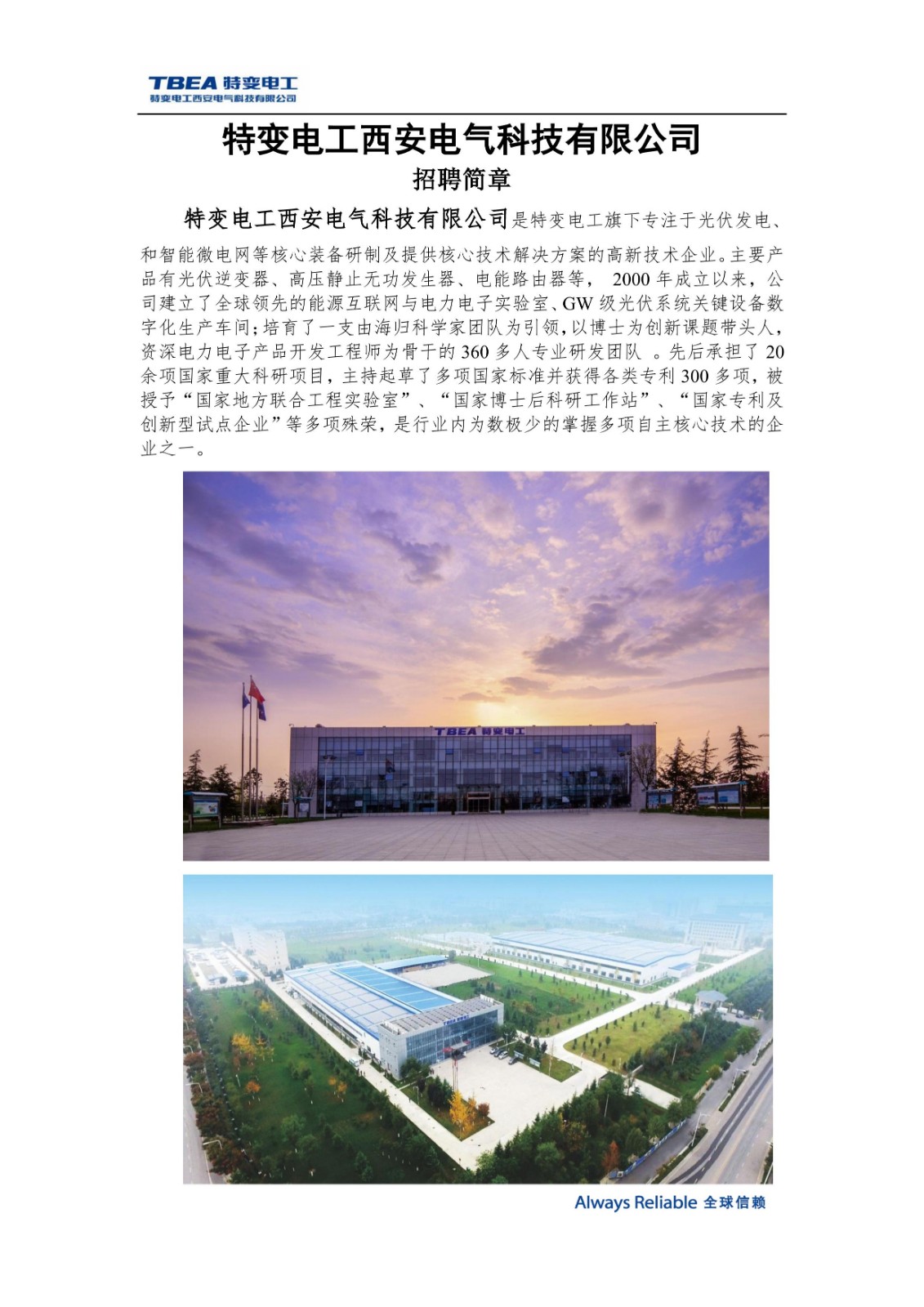 特变电工公司西安电气科技有限公司年校园招聘简章