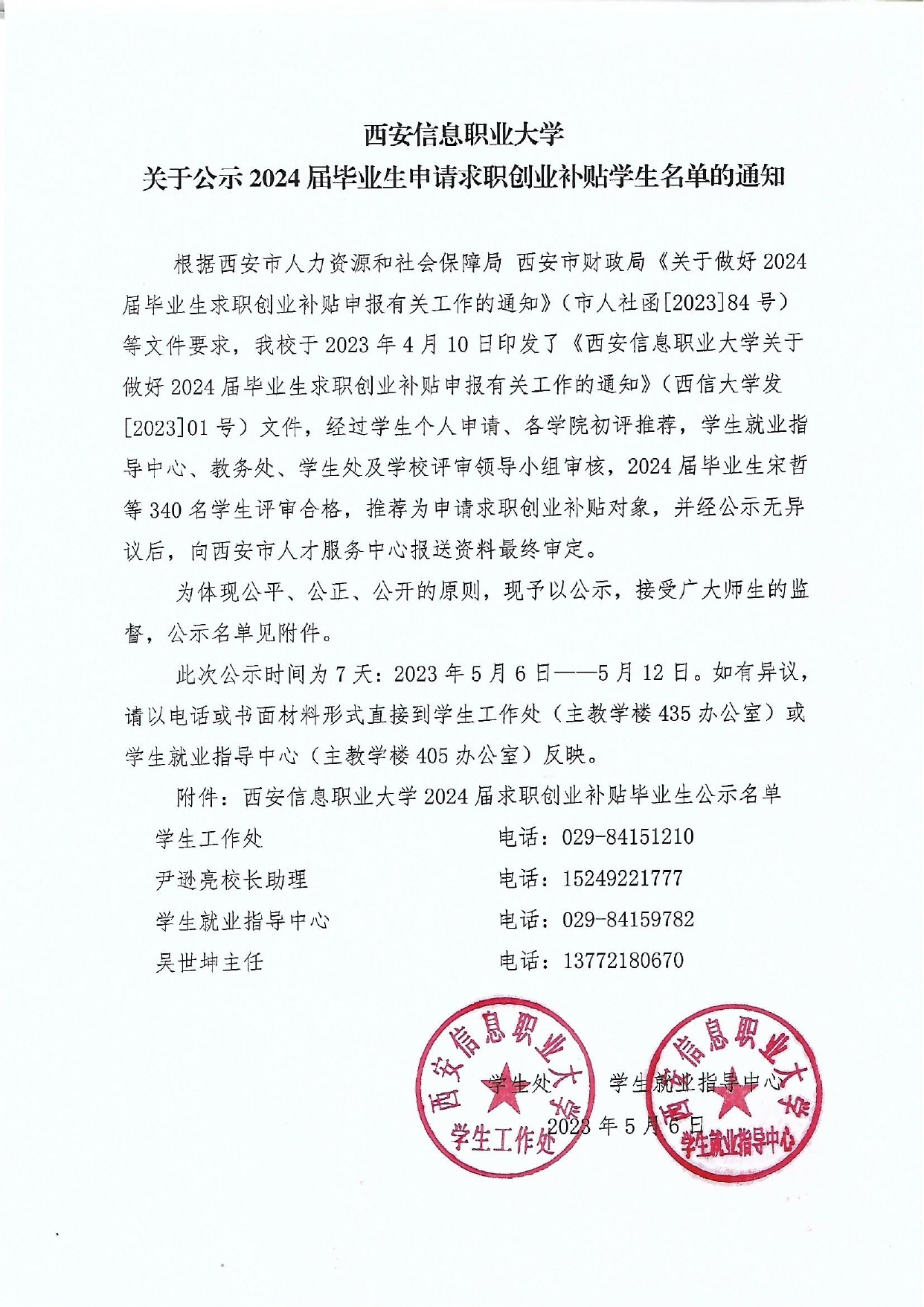 AWC万象城娱乐关于公示2024届毕业生申请求职创业补贴学生名单的通知
