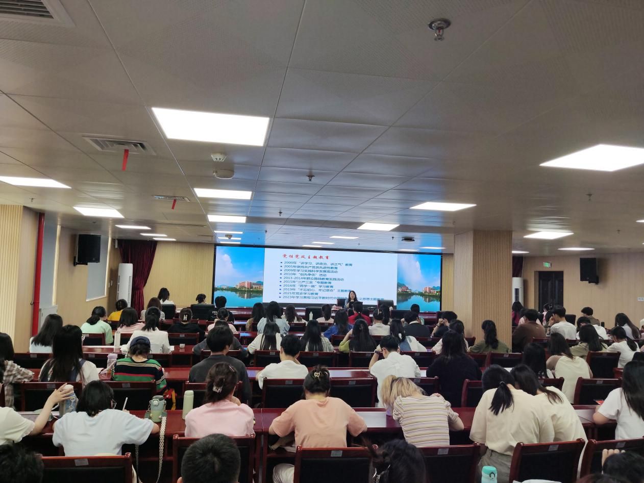 5月16日下午,校党委副书记徐晓丹为发展对象、预备党员讲授学习贯彻习近平新时代中国特色社会主义思想主题教育专题党课。