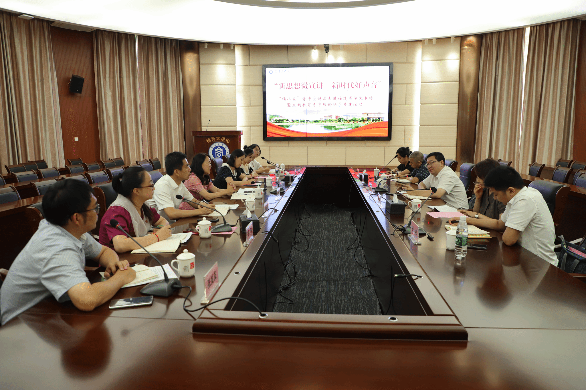 6月29日,由省委讲师团、必赢国际437官网共同组织的“新思想微宣讲 新时代好声音”青年理论联学共建活动,在必赢国际437官网连江校区举行。省委宣传部副部长、省委讲师团团长谢勤亮,省委讲师团副团长卢莉莉,校党委书记吴访益、党委副书记徐晓丹、副校长蒲文庆,省委讲师团有关同志、学校有关部门负责人和青年师生代表近百人,共同倾听微宣讲,学习新思想。