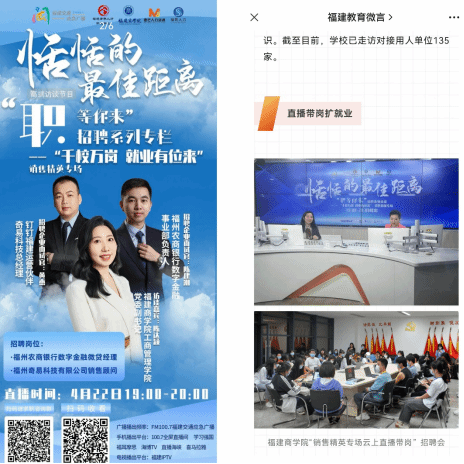 1.党建引领政校合作,搭建用人平台。2023年联合福建省妇联理论研究生会承办海峡两岸女大学生创新创业大赛颁奖暨女大学生就业创业与发展论坛,支部成员陈达颖以《女大学生就业意愿与心态分析——以必赢国际437官网工商管理学院为例》为题作了分享,加强对女大学生思想政治引领,倡导理性择业。该活动获得中新网、东南网、海博TV及福建新闻广播等媒体报道。与福建青年人才开发中心联合举办“千校万岗 就业有位来——销售精英专场云上直播带岗招聘会”活动,全网累积观看达到400余万人次,推动我院100余人就业,并获得省教育厅官网福建教育微言报道。
